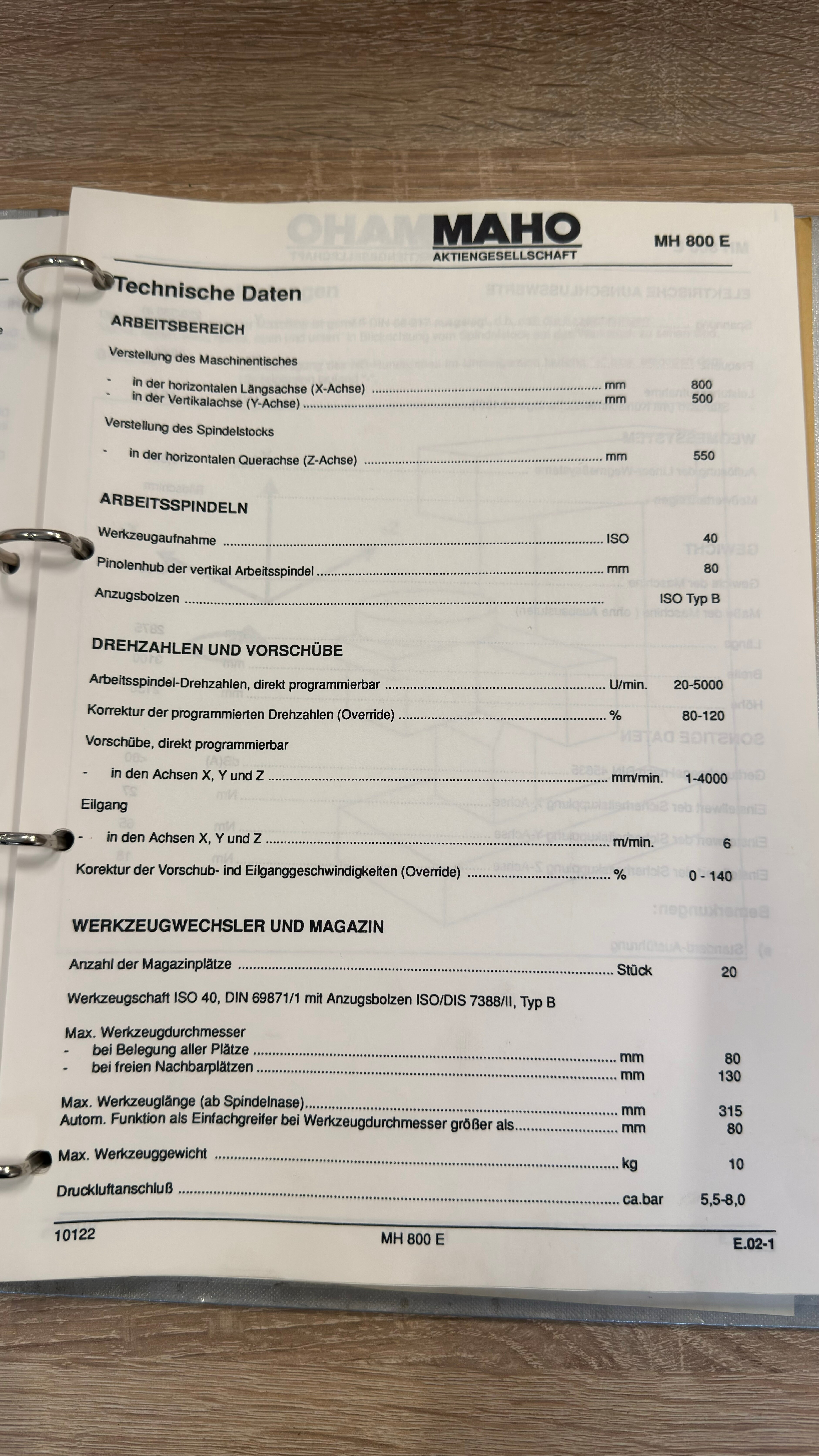 - Przejazdy w osiach X 800mm, Y 500mm, Z 550mm